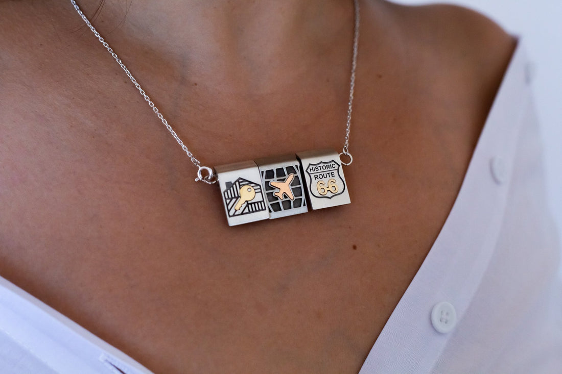Discover Story Stroke's collection of customizable sterling silver necklaces with 925 silver and 18k gold pins. Choose from a variety of pendants to represent your bucket list achievements. Perfect for celebrating adventures and milestones. Shop now for unique, personalized jewelry gifts.
