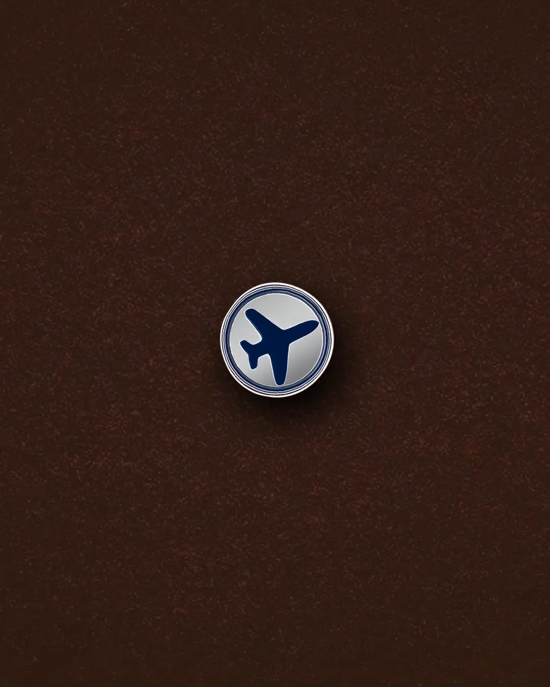 This circular sterling silver and enamel detailed pendant represents the goal of travel.